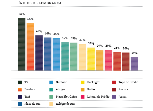 O ônibus teve um índice de lembrança de 66%, perdendo apenas para a TV, que ficou com 73%.
